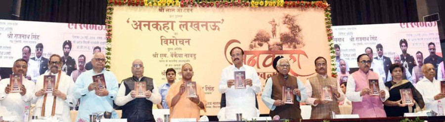 लखनऊ। उपराष्ट्रपति एम वेंकैया नायडू ने भारतीय जनता पार्टी के वरिष्ठ राजनेता एवं सांसद लालजी टंडन की पुस्तक ‘अनकहा लखनऊ’ का विमोचन किया। उपराष्ट्रपति ने कार्यक्रम को सम्बोधित करते हुए कहा कि लालजी टंडन ने अपनी लेखनी के माध्यम से ‘अनकहा लखनऊ’ में उन बातों का जिक्र किया है, जिनका उल्लेख इतिहास की पुस्तकों में भी नहीं है। उन्होंने कहा कि लालजी टंडन ने पुस्तक में यहां के सामाजिक, आर्थिक, राजनैतिक एवं सांस्कृतिक पहलुओं के अनछुए बिंदुओं पर अपनी रचनाधर्मिता की है। वेंकैया नायडू ने कहा कि लखनऊ की गंगा-जमुनी संस्कृति पूरे विश्व में प्रसिद्ध है, यह शहर सर्वधर्म समभाव के प्रतीक के रूपमें जाना जाता है, यहां हिंदू-मुस्लिम एकदूसरे के त्योहारों में शामिल होते हैं और परस्पर सौहार्द को बनाए रखते हैं। यह कार्यक्रम साइंटिफिक कन्वेंशन सेंटर लखनऊ में हुआ था।