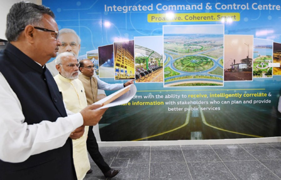 रायपुर। प्रधानमंत्री नरेंद्र मोदी ने आज नया रायपुर स्मार्ट सिटी के एकीकृत कमांड और नियंत्रण केंद्र का उद्घाटन किया। इस अवसर पर केंद्रीय आवास और शहरी मामलों के राज्यमंत्री हरदीप पुरी और छत्तीसगढ़ के मुख्यमंत्री डॉ रमन सिंह उपस्थित थे। नया रायपुर का एकीकृत कमांड और नियंत्रण केंद्र अब देश का 10वां स्मार्ट सिटी केंद्र बन गया है। महत्वाकांक्षी स्मार्ट सिटी मिशन के अंतर्गत 9 नगरों में एकीकृत कमांड और नियंत्रण केंद्र परिचालन में हैं, जिनमें अहमदाबाद, वडोदरा, सूरत, पुणे, नागपुर, राजकोट, विशाखापत्तनम, भोपाल और काकीनाडा शामिल हैं। नया रायपुर छत्तीसगढ़ के तीन स्मार्ट नगरों में शामिल है, इसका चयन स्मार्ट सिटी मिशन के अंतर्गत किया गया है। अन्य दो शहर रायपुर और विलासपुर हैं। रायपुर को सूचना प्रौद्योगिकी, जैव प्रौद्योगिकी, वित्त, व्यापार, सेवा क्षेत्र, चिकित्सा और शिक्षा सेवाओं के हब के रूपमें विकसित करने की योजना है।