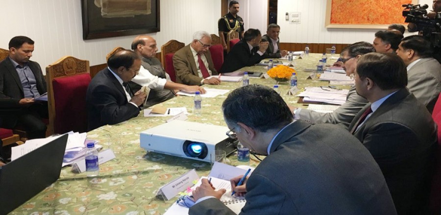 श्रीनगर। केंद्रीय गृहमंत्री राजनाथ सिंह ने जम्मू-कश्मीर की अपनी दो दिन की यात्रा के दौरान श्रीनगर में एक उच्चस्तरीय बैठक में घाटी में सुरक्षा स्थिति की समीक्षा की। गृहमंत्री ने घाटी में उत्तरदायित्व, पारदर्शिता और सुशासन लाने के सभी उपायों के प्रति भाजपा सरकार के संकल्प को दोहराया। उन्होंने कहा कि सुशासन और विकास पर नए सिरे से फोकस करने के साथ केंद्र सरकार जम्मू-कश्मीर राज्य के लोगों में नई आकांक्षा और आशा की किरण के प्रति आशांवित है। राजनाथ सिंह ने कहा कि विकास और सुशासन जम्मू-कश्मीर के लोगों का सपना है और केंद्र सरकार व्यवस्था में जवाबदेही और पारदर्शिता लाने के सभी संभव उपाय करने के लिए प्रतिबद्ध है।