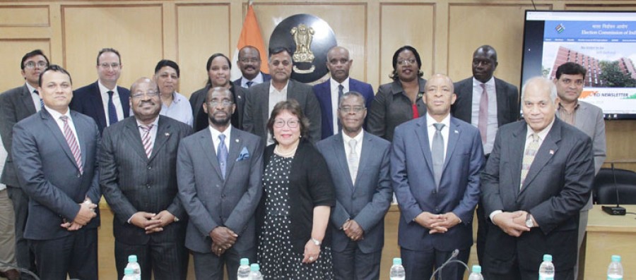 नई दिल्ली। अंतरराष्ट्रीय संगठन संयुक्तराष्ट्र में 12 देशों के स्थायी प्रतिनिधियों के एक शिष्टमंडल ने भारतीय निर्वाचन आयोग का दौरा किया। इन देशों में इक्वेटोरियल गिनी, कोमोरोस, नाइजर, सेंट किट्स एंव नेविस, ग्रेनेडा, माल्टा, मार्शल आइलैंड्स, डोमिनिका, सेंट लुसिया, एस्वातिनी, जाम्बिया और किरिबाती के स्थायी प्रतिनिधि शामिल थे। यह शिष्टमंडल 22 से 28 अगस्त तक भारत की यात्रा पर है, जिसे भारत के विदेश मंत्रालय ने प्रायोजित किया है। शिष्टमंडल ने भारतीय निर्वाचन आयुक्त अशोक लवासा से मुलाकात की और उनके साथ भारतीय निर्वाचन प्रणाली के उत्कृष्ट व्यवहारों पर चर्चा की।