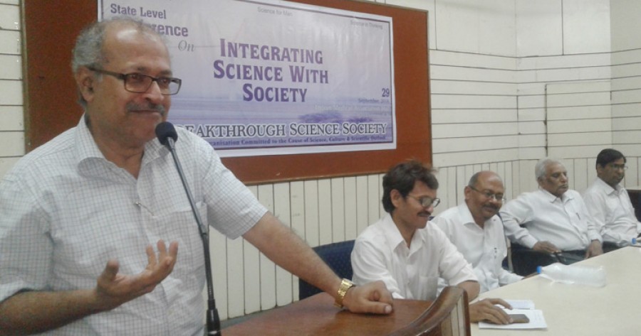 लखनऊ। राष्ट्रस्तरीय वैज्ञानिक संगठन ब्रेकथ्रू साइंस सोसाइटी के उत्तर प्रदेश राज्य प्रखंड ने अपना दूसरा राज्य सम्मेलन आईएमए भवन लखनऊ में आयोजित किया, जिसमें भारतीय विज्ञान शिक्षण एवं अनुसंधान कोलकाता के डीन, संगठन के राष्ट्रीय महासचिव और भटनागर सम्मान प्राप्त प्रख्यात वैज्ञानिक प्रोफेसर सौमित्रो बनर्जी ने प्रमुख वक्ता थे और सम्मेलन का विषय था-'विज्ञान का समाज के साथ एकीकरण।' प्रोफेसर सौमित्रो बनर्जी ने विषय पर बोलते हुए कहा कि विज्ञान ने भिन्न-भिन्न असंख्य तरीक़ों से हमारी रोज़मर्रा की ज़िंदगी को प्रभावित किया है। उन्होंने कहा कि वर्तमान में तमाम वे चीजें जिन्हें हमने अभिन्न अंग के तौरपर स्वीकार कर लिया है जैसे एक बटन दबा देने मात्र से ही तत्काल उजाला हासिल कर लेना, विज्ञान से प्राप्त उपहार है। सम्मेलन में आम जनमानस तक वैज्ञानिक दृष्टिकोण की गहरी पैठ कराने हेतु कारगर प्रयास के इरादे से एक सलाहकार मंडल और एक संयोजन समिति का गठन भी किया गया।