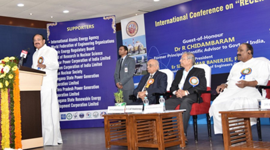 उपराष्ट्रपति वेंकैया नायडू ने कहा देश में इस समय ऊर्जा की मांग बढ़ रही है और खपत की दर प्रतिवर्ष 4.2 प्रतिशत है। उन्होंने कहा कि तेजी से हो रहे शहरीकरण और औद्योगिकीकरण उन कारकों में शामिल है, जो ऊर्जा की मांग तथा खपत में और बढ़ोत्तरी कर रहे हैं। उन्होंने कहा कि खपत को ध्यान में रखते हुए देश में कुल ऊर्जा परिदृश्य में परमाणु ऊर्जा की हिस्सेदारी बढ़ाई जानी है, जो देश के सतत विकास के लिए जरूरी है, इससे ग्रीन हाउस गैसों के उत्सर्जन में कमी लाने की भारत की अंतर्राष्ट्रीय प्रतिबद्धता को हासिल किया जा सकता है। वेंकैया नायडू ने कहा कि स्वच्छ एवं कम लागत आधारित ऊर्जा समय की जरूरत है। उपराष्ट्रपति ने कहा कि परमाणु ऊर्जा कम लागत वाली है और वाणिज्यिक रूपसे ऊर्जा का एक साध्य स्रोत है, भारत जैसे विकासशील देश को ऐसे अहम ऊर्जा स्रोत का इस्तेमाल करना चाहिए, जो स्वच्छ एवं कम लागत वाला हो।