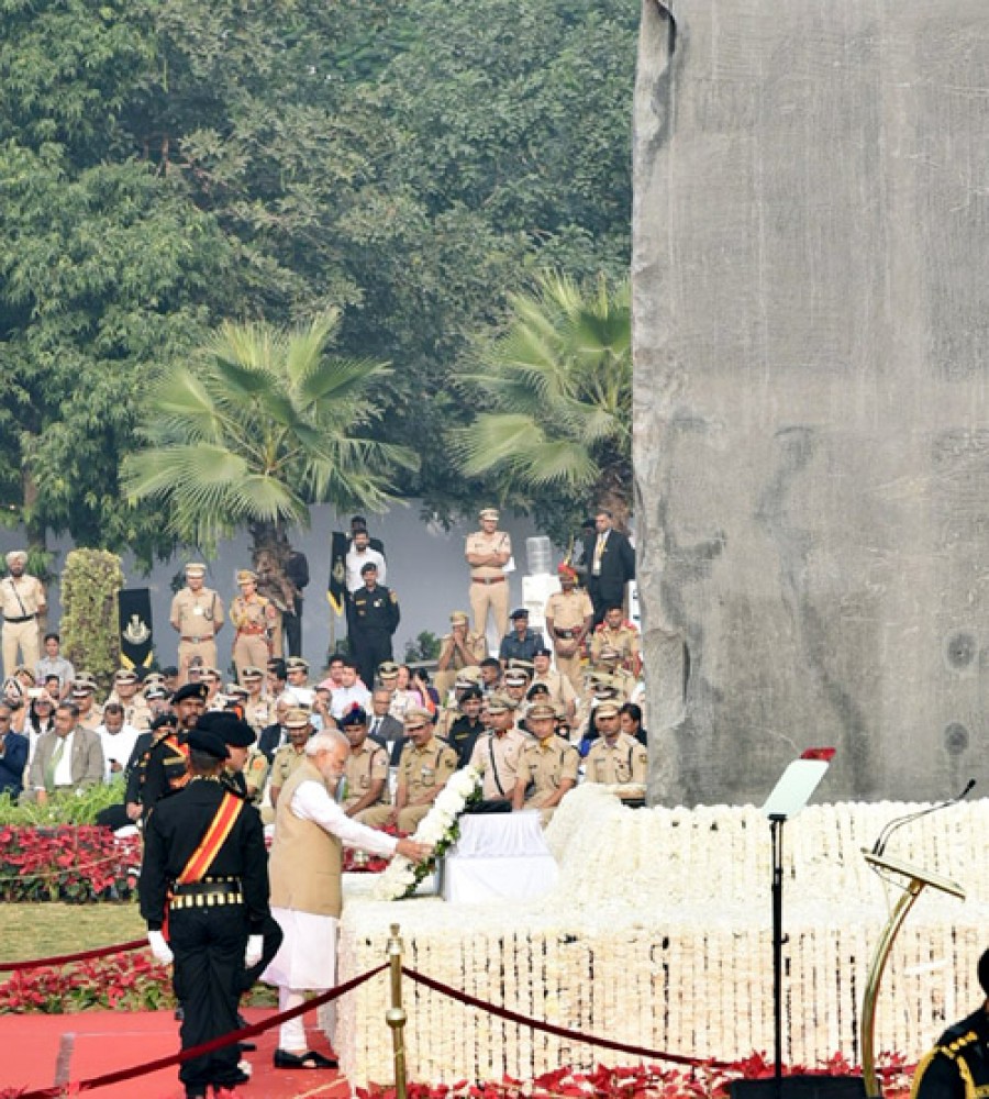 प्रधानमंत्री नरेंद्र मोदी ने कहा कि ये मेरा सौभाग्य है कि मुझे राष्ट्रसेवा और समर्पण की अमर गाथास्वरूप राष्ट्रीय पुलिस स्मारक संग्रहालय को देश को समर्पित करने का अवसर मिला है। उन्होंने चाणक्यपुरी नई दिल्ली में पुलिस स्मृति दिवस पर श्रद्धांजलि कार्यक्रम में शहीदों को पुष्पांजलि अर्पित की और राष्ट्रसेवा में अपना जीवन न्यौछावर करने वाले पुलिसकर्मियों के साहस और बलिदान को सलाम किया। उन्होंने हॉट स्प्रिंग्स लद्दाख में बहादुरी से लड़ने वाले बहादुर पुलिसकर्मियों के परिवार एवं प्रियजनों के प्रति सम्मान व्यक्त किया। उन्होंने हॉट स्प्रिंग्स घटना के तीन जीवित सदस्यों को सम्मानित किया। उन्होंने कहा कि यह दिन जम्मू-कश्मीर में शांति और व्यवस्था कायम करने के लिए आतंकवाद से निपटने वाले हर जवान को याद करने का भी है और देश के नक्सल प्रभावित जिलों में ड्यूटी पर तैनात जवान बेहतरीन काम कर रहें हैं एवं शांति स्थापना की दिशा में वे तेजी से आगे बढ़ रहे हैं। उन्होंने कहा कि नक्सल प्रभावित जिलों की संख्या कम हो रही है, इन इलाकों के नौजवान मुख्यधारा से जुड़ रहे हैं। प्रधानमंत्री नरेंद्र मोदी ने राष्ट्रीय आपदा मोचन बलों और राज्य आपदा मोचन बलों के योगदान का भी जिक्र किया और कहा कि पुलिस और अर्धसैनिकबल राष्ट्रीय आपदा मोचन बलों का महत्वपूर्ण अंग हैं और आपदाओं से निपटने में उनके योगदान बहुत महत्वपूर्ण हैं।