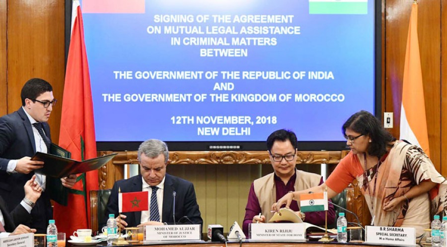 नई दिल्ली। भारत और मोरक्को ने फौजदारी मामलों में पारस्परिक कानूनी सहायता के लिए महत्वपूर्ण समझौता किया है, जिसपर आज नई दिल्ली में भारत सरकार की ओर से केंद्रीय गृह राज्यमंत्री किरेन रिजिजू और मोरक्को सरकार की ओर से न्यायमंत्री मोहम्मद औज्जर ने हस्ताक्षर किए। भारत और मोरक्को में हुए इस समझौते के तहत दोनों देशों के बीच द्विपक्षीय सहयोग और भी मजबूत होगा एवं साथ ही इसकी प्रभावशीलता में भी वृद्धि होगी।