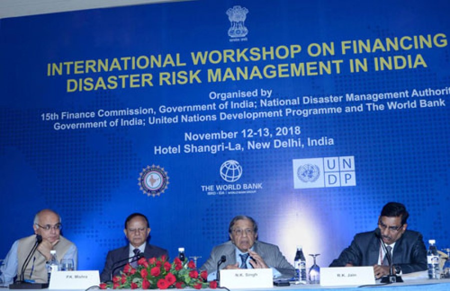 नई दिल्ली। भारत में आपदा जोखिम प्रबंधन के लिए वित्तपोषण की जरूरत पर पंद्रहवें वित्त आयोग ने दिल्ली में दो दिवसीय अंतर्राष्ट्रीय कार्यशाला का शुभारंभ किया, जिसे 15वें वित्त आयोग, एनडीएमए, यूएनडीपी और विश्व बैंक ने संयुक्त रूपसे आयोजित किया। उद्घाटन सत्र में वित्त आयोग के अध्यक्ष एनके सिंह, आयोग के सदस्य, प्रधानमंत्री के अतिरिक्त प्रधान सचिव पीके मिश्रा, विश्व बैंक के कंट्री डायरेक्टर जुनैद कमाल, विभिन्न देशों एवं बीमा क्षेत्र के प्रतिनिधियों और सार्वजनिक वित्त के विशेषज्ञों ने भी शिरकत की।