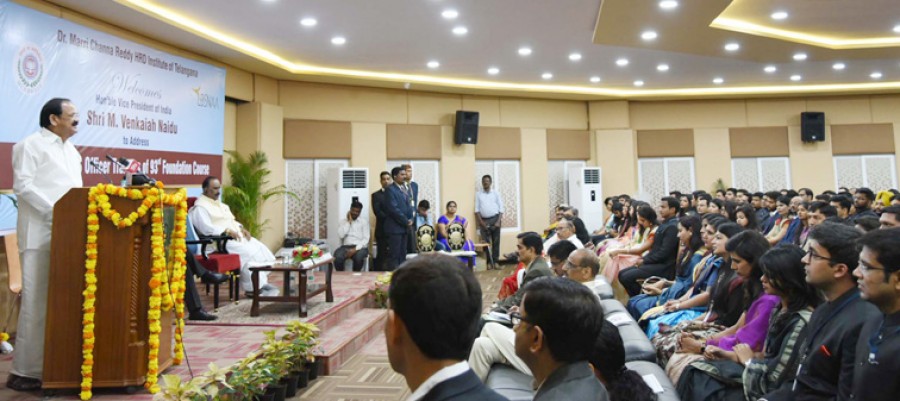 उपराष्ट्रपति ने अधिकारियों से कहा कि वे भारत और भारत के बाहर से उत्कृष्ट व्यवहारों की सीख प्राप्त करें। उन्होंने कहा कि अधिकारियों कोसंवेदना, कुशलता, निष्पक्षता और सत्यनिष्ठा को मार्गदर्शक सिद्धांतों के रूपमें अपनाना चाहिए, ताकि वे कारगर और जवाबदेह तरीके से प्रशासनिक काम कर सकें। इस अवसर पर तेलंगाना के गृहमंत्री नायनी नरसिम्हा रेड्डी, डॉ मर्री चन्ना रेड्डी मानव संसाधन विकास संस्थान के महानिदेशक वीपी आचार्य, शिक्षक और विभिन्न राज्यों का प्रतिनिधित्व करने वाले 316 से अधिक प्रशिक्षु अधिकारी उपस्थित थे।