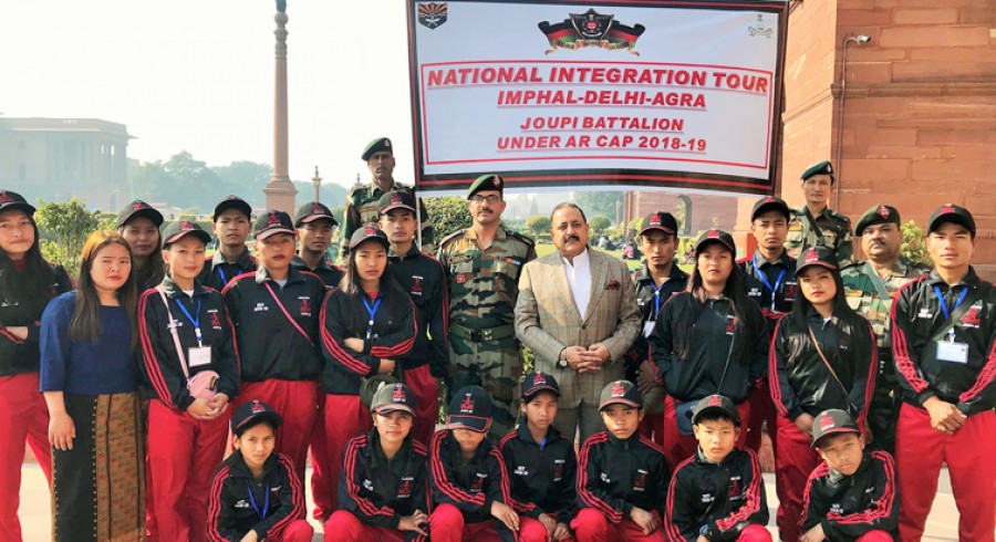 नई दिल्ली। केंद्रीय पूर्वोत्तर क्षेत्र विकास, प्रधानमंत्री कार्यालय, कार्मिक, लोक शिकायत एवं पेंशन, परमाणु ऊर्जा और अंतरिक्ष विभाग में राज्यमंत्री डॉ जितेंद्र सिंह से मणिपुर के चंदेल जिले के डिंग्पी क्षेत्र से राष्ट्रीय अखंडता भ्रमण पर दिल्ली आए 20 छात्रों के एक समूह ने मुलाकात की। इस कार्यक्रम को 29 असम राइफल्स ने आयोजित किया है। छात्रों की आयु 13 से 20 वर्ष है और इनके साथ 2 शिक्षक भी हैं। इस भ्रमण का उद्देश्य छात्रों को देश के अन्य भागों की जानकारी देना है। छात्रों से बातचीत करते हुए डॉ जितेंद्र सिंह ने कहा कि यह भारत के सुदूर सीमावर्ती क्षेत्र के बच्चों के लिए अद्भुत अवसर है, ऐसे भ्रमण कार्यक्रमों से छात्रों को देश के अन्य हिस्सों की जानकारी मिलती है और उनका आत्मविश्वास बढ़ता है।