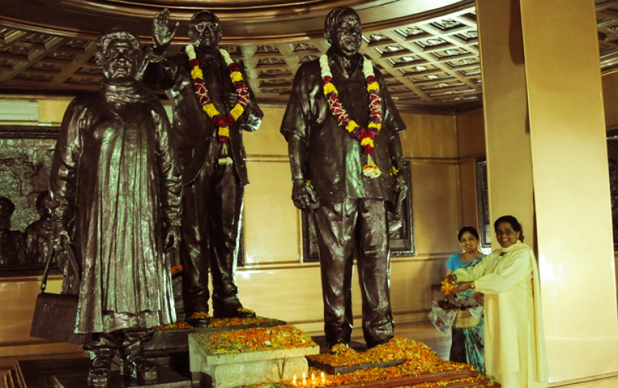 नई दिल्ली। बीएसपी की राष्ट्रीय अध्यक्ष एवं उत्तर प्रदेश की पूर्व मुख्यमंत्री मायावती के नेतृत्व में बामसेफ, डीएस-4 तथा बहुजन समाज पार्टी के संस्थापक कांशीराम को उनकी 79वीं जयंती पर बेहद आदर व सम्मान के साथ याद कर उन्हें भावभीनी श्रद्धांजलि अर्पित की गई। मायावती ने अपनी व अपनी पार्टी के समर्थकों व शुभ-चिंतकों की ओर से कांशीराम के जाति-विहीन मानवतावादी भारत निर्मित करने के संकल्प को दोहराया। मायावती सर्वप्रथम नई दिल्ली में ‘बहुजन समाज प्रेरणा केंद्र पहुँचीं और कांशीराम की प्रतिमा पर पुष्पांजलि अर्पित की।