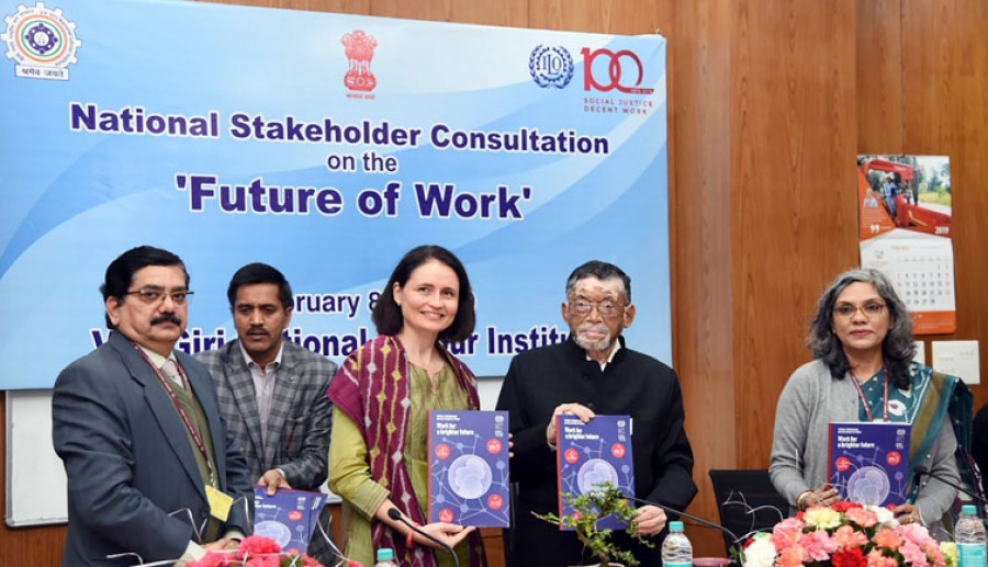 पेशे के भविष्य पर वैश्विक आयोग ने सभी पहलुओं का अध्ययन किया है और उपयोगी सिफारिशें पेश की हैं। उन्होंने कहा कि हमारे देश के विशेष संदर्भ में ‘पेशे का भविष्य’ पर पेश की गई रिपोर्ट पर सभी हितधारकों ने विचार-विमर्श किया। वीवी गिरि राष्ट्रीय श्रम संस्थान के चार प्रकाशनों का विमोचन भी समारोह के दौरान किया गया। डगमर वाल्टर निदेशक आईएलओ, दक्षिण एशिया के लिए डीडब्ल्यूटी और भारत के लिए कंट्री ऑफिस ने पैनल परिचर्चा की अध्यक्षता की। श्रम एवं रोज़गार मंत्रालय में अपर सचिव एवं वित्तीय सलाहकार सिबानी स्वेन और मंत्रालय में अपर सचिव अनुराधा प्रसाद ने भी इन चर्चाओं में भाग लिया। ‘पेशे के भविष्य पर वैश्विक आयोग’ के सदस्य डॉ ए दीदार सिंह ने पेशे के भविष्य पर आईएलओ के वैश्विक आयोग की प्रस्तुति दी। वीवी गिरि राष्ट्रीय श्रम संस्थान के महानिदेशक डॉ एच श्रीनिवास ने अतिथियों का स्वागत किया और परामर्श से जुड़ी जानकारियां दीं।