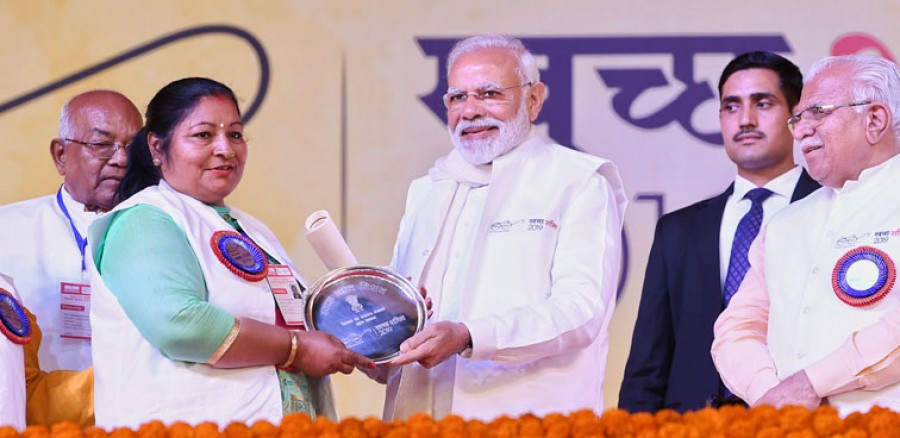 कुरुक्षेत्र (हरियाणा)। प्रधानमंत्री नरेंद्र मोदी ने हरियाणा के कुरुक्षेत्र में महिला सरपंचों के सम्मेलन स्वच्छ शक्ति 2019 में भाग लिया और देशभर की महिला सरपंचों को स्वच्छ शक्ति 2019 पुरस्कार प्रदान किए। प्रधानमंत्री ने कुरुक्षेत्र में स्वच्छ सुंदर शौचालय प्रदर्शनी भी देखी। उन्होंने हरियाणा में अनेक विकास परियोजनाओं का उद्घाटन किया और आधारशिला रखी। इस अवसर पर प्रधानमंत्री ने कहा कि देशभर के स्वच्छाग्रहियों के एकजुट होने से नए भारत के लिए स्वच्छ भारत का संकल्प मजबूत हुआ है। प्रधानमंत्री ने कहा कि स्वच्छ शौचालयों के अभाव में हमारी माताओं और बेटियों के लगातार संघर्ष ने मुझे द्रवित कर दिया था और मैंने लाल किले की प्राचीर से स्वच्छ भारत की प्रतिज्ञा की थी। उन्होंने कहा कि इन साढ़े चार वर्ष में देशभर में 10 करोड़ से अधिक शौचालयों का निर्माण कराया गया है, 600 जिलों में 5 लाख गांव खुद को खुले में शौच से मुक्त कर चुके हैं, इससे उन्हें सम्मानजनक जीवन मिला है।