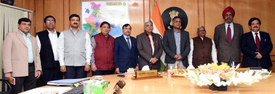 नई दिल्ली। भारतीय निर्वाचन आयोग ने जम्मू-कश्मीर में चुनाव स्थिति का आकलन करने के लिए तीन विशेष पर्यवेक्षकों डॉ नूर मोहम्मद, विनोद जुत्शी और एएस गिल की नियुक्ति की है, जिन्होंने मुख्य निर्वाचन आयुक्त सुनील अरोड़ा, निर्वाचन आयुक्तों अशोक लवासा और सुशील चंद्र के साथ निर्वाचन आयोग मुख्यालय नई दिल्ली में हुई एक बैठक में भाग लिया। मुख्य निर्वाचन आयुक्त सुनील अरोड़ा ने विशेष केंद्रीय पर्यवेक्षकों का स्वागत करते हुए उन्हें इस कठिन और नाजुक कार्य को स्वीकार करने के लिए आभार व्यक्त किया। पर्यवेक्षकों के कार्य में निर्वाचन आयोग के 10 मार्च 2019 को चुनावों की समय सारिणी की घोषणा करते समय दिए गए प्रेस वक्तव्य के पैरा-62 के संदर्भ में वास्तविक समय आधार पर जम्मू-कश्मीर की स्थिति का आकलन करना शामिल है।