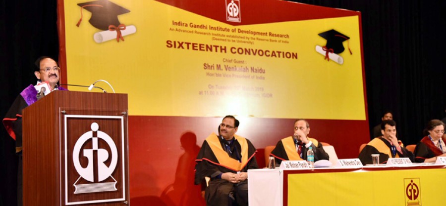 वेंकैया नायडू ने वैज्ञानिकों, तकनीकीविदों और अभियंताओं से ताजा घटनाक्रमों से स्वयं को अवगत रखने और नई प्रौद्योगिकियां अपनाने को कहा। उन्होंने यह दलील दी कि तेजी से एकीकृत हो रहे विश्व में भारत की भी प्रगति सुनिश्चित करने के लिए नई तकनीकों को अपनाना अत्यंत आवश्यक है। उपराष्ट्रपति ने कहा कि हमें निश्चित तौरपर ऐसे क्षेत्रों की पहचान करनी चाहिए, जहां हमें प्रतिस्पर्धी दृष्टि से बढ़त हासिल है और इसके साथ ही हमें इस दिशा में आगे बढ़ना चाहिए। उन्होंने स्नातक की शिक्षा हासिल कर रहे विद्यार्थियों से सर्वोत्तम पारम्परिक मूल्यों को संरक्षित रखने का तरीका सीखने को कहा। उपराष्ट्रपति ने इसके साथ ही विद्यार्थियों से नकारात्मकता से दूर रहने, सकारात्मक नजरिया विकसित करने और सामाजिक दृष्टि से जागरुक, सहानुभूतिपूर्ण एवं शांतिप्रिय रहने को कहा। उन्होंने कहा कि विद्यार्थियों को रचनात्मक नजरिया विकसित करना चाहिए तथा जो भी काम वे कर रहे हैं, उनमें प्रवीणता हासिल करने पर उन्हें और ज्यादा फोकस करना चाहिए। इंदिरा गांधी विकास शोध संस्थान के निदेशक डॉ एस महेंद्र देव, डीन डॉ जयति सरकार और शिक्षक एवं छात्र भी इस अवसर पर उपस्थित थे।