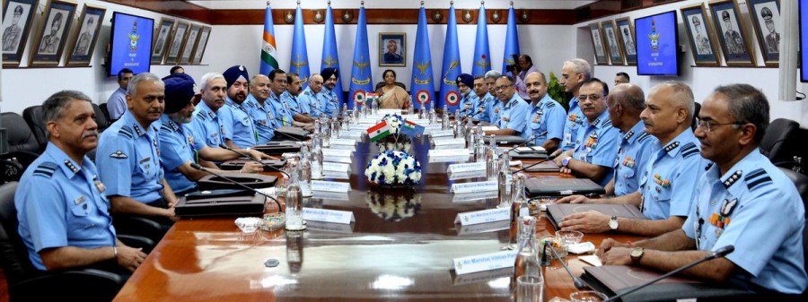 रक्षामंत्री निर्मला सीतारमण ने भारतीय महासागर क्षेत्र में तथा मानवीय सहायता और आपदा राहत कार्यों में वायुसेना की सक्रिय भूमिका पर जोर दिया। उन्होंने कहा कि अपनी आवश्यकताओं को ध्यान में रखते हुए वायुसेना को विश्वस्तरीय आधुनिकतम तकनीक के साथ भविष्य की तैयारी करनी चाहिए और ऐसी तकनीकों पर भी ध्यान दिया जाना चाहिए, जिन्हें भारत में विकसित किया जा सकता है। रक्षामंत्री ने कहा कि भारतीय वायुसेना देश की रक्षा उत्पादन क्षमता को बेहतर बनाने में प्रमुख भूमिका निभाएगी। उन्होंने कहा कि उन्हें वायुसेना की अति महत्वपूर्ण जरूरतों के बारे में जानकारी है। उन्होंने विश्वास दिलाया कि एक राष्ट्र के रूपमें हमें इन क्षमताओं का निर्माण करने की आवश्यकता है। उन्होंने कहा कि वायुसेना के सेवा में और अवकाश प्राप्त कर्मी भारत में रक्षा, निर्माण और उत्पादन को बढ़ाने में महत्वपूर्ण योगदान दे सकते हैं। उन्होंने वायुसेना के सैन्यकर्मियों को दिए जाने वाले प्रशिक्षण की सराहना करते हुए कहा कि यह विंग कमांडर अभिनंदन के कार्यों और व्यवहार से भी परिलक्षित होता है।