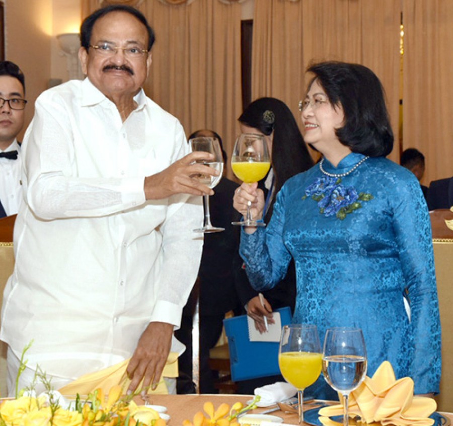 वियतनाम की उपराष्ट्रपति के साथ एक संयुक्त प्रेस वक्तव्य में उपराष्ट्रपति वेंकैया नायडू ने कहा कि भारत और वियतनाम अबाधित आर्थिक गतिविधियां संचालित करने, समुद्र और वायुमार्ग से आवागमन की सुविधाएं विकसित करने तथा आपसी विवादों का अंतर्राष्ट्रीय नियमों के अनुसार पूरे खुलेपन और पारदर्शी तरीके से समाधान तलाशने के लिए प्रतिबद्ध हैं। वेंकैया नायडू ने विश्वास जताया कि दोनों नेताओं के बीच बातचीत से भारत और वियतनाम के द्विपक्षीय सहयोग को नई दिशा और गति मिलेगी। उन्होंने कहा कि दोनों देशों के बीच शीर्ष नेताओं की उच्चस्तरीय यात्रा इस बात का स्पष्ट संकेत हैं कि ये देश अपने रणनीतिक सम्बंधों को और मजबूत बनाना चाहते हैं और भारत, वियतनाम के विकास में एक विश्वसनीय सहयोगी बना हुआ है। उन्होंने वियतनाम को भारत की एक्ट ईस्ट पॉलिसी का मजबूत रणनीतिक स्तम्भ बताया और कहा कि वियतनाम के विकास के लिए भारत पहले से भी ज्यादा मजबूती के साथ खड़ा है।