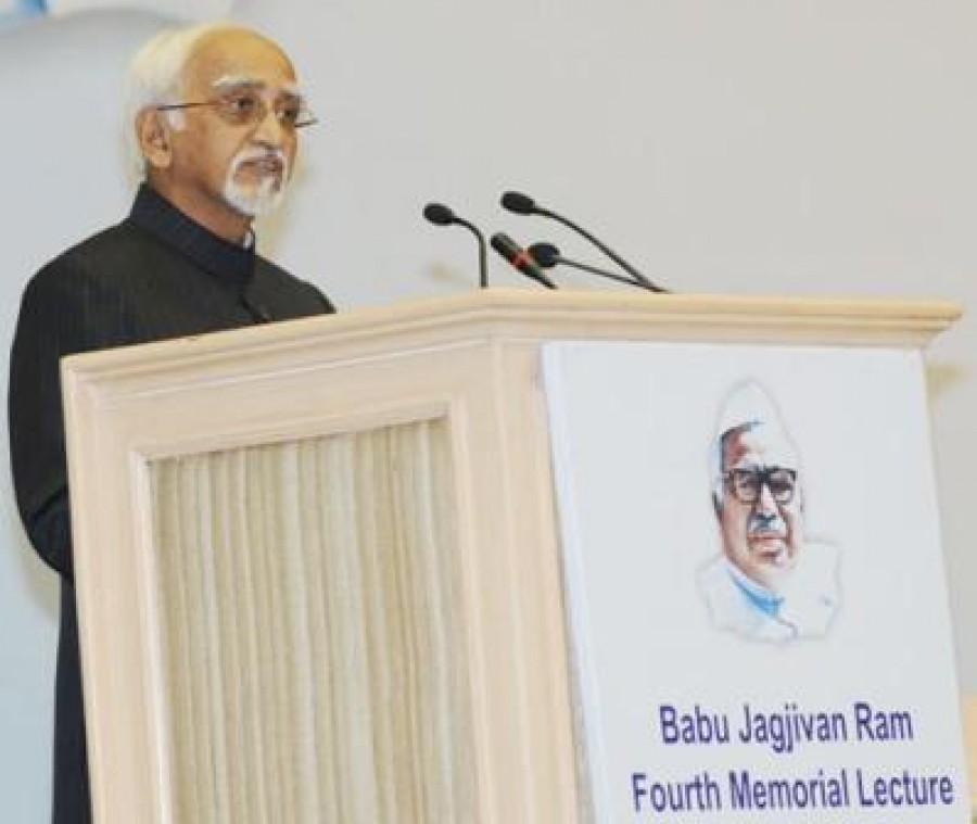 नई दिल्ली। उपराष्ट्रपति मोहम्मद हामिद अंसारी ने बुधवार को बाबू जगजीवन राम स्मारक व्याख्यान दिया। उपराष्ट्रपति ने कहा कि बाबूजी का जीवन सामाजिक एवं आर्थिक ढांचों में समान अवसर के एकल व्यक्ति अनुसरण का वास्तविक प्रदर्शन था। उनका विश्वास था कि प्रजातंत्र एवं जाति व्यवस्था साथ-साथ नहीं चल सकते, यही कारण था कि प्रजातंत्र की क्रियाविधि एवं संवैधानिक मूल्यों के अनुसरण से कोई भी समाज में परिवर्तन की कामना कर सकता है। अंसारी ने कहा कि कृषि में बाबूजी की पांच नीतियों की पहुंच महत्त्वपूर्ण थी और वह आज भी प्रासंगिक हैं। लोकसभा अध्यक्ष मीरा कुमार ने कार्यक्रम की अध्यक्षता की। मीरा कुमार के अलावा अनेक सांसद विशिष्ट अतिथि कार्यक्रम में उपस्थित थे।