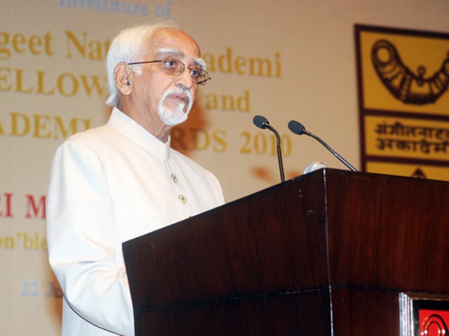 नई दिल्ली। उप राष्ट्रपति मोहम्मद हामिद अंसारी ने एक विशेष प्रतिष्ठापन समारोह में वर्ष-2010 के लिए संगीत नाटक अकादमी फैलोशिप और अकादमी पुरस्कार प्रदान किए। इस अवसर पर हामिद अंसारी ने कहा कि कला के रूप, प्रारूप और व्याकरण को माध्यम और बाजार की पसंद के अनुसार तैयार किए जाने की जरूरत है और जिसे मोटे तौर पर बाजार कहा जाता है उसके प्रभाव से बाहर निकलने में सक्षम होना एक चुनौती है। एक ओर जहां शुद्धतावादी इस प्रवृत्ति से घबराते हैं, वे परंपराओं के साथ जुड़े रहते हैं और प्रयोग से दूर रहते हैं, जो कला सार को कमजोर करते हैं, वहीं अन्य लोग इस भूमंडलीकृत विश्व में शास्त्रीय और स्वदेशी कला के रूपों को अपनाने और संरक्षित करने की जरूरत पर जोर देते हैं।