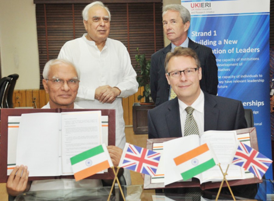 नई दिल्ली। विश्वविद्यालय अनुदान आयोग के अध्यक्ष प्रोफेसर वेद प्रकाश और ब्रिटिश कौंसिल के निदेशक रॉब लाइनेस ने 16 अगस्त को एक सहमति पत्र पर हस्ताक्षर किए। इसके अंतर्गत चार स्तरों से संबंधित विश्वविद्यालय क्षेत्र के ब्रिटेन-भारत शिक्षा और शोध पहल के दूसरे चरण में सहमत सभी गतिविधियों और कार्यक्रमों का अनुमोदन किया गया है। सहमति पत्र पर हस्ताक्षर केंद्रीय मानव संसाधन विकास मंत्री कपिल सिब्बल और भारत में ब्रिटेन के उच्चायुक्त सर रिचर्ड स्टैग की मौजूदगी में किए गए।
