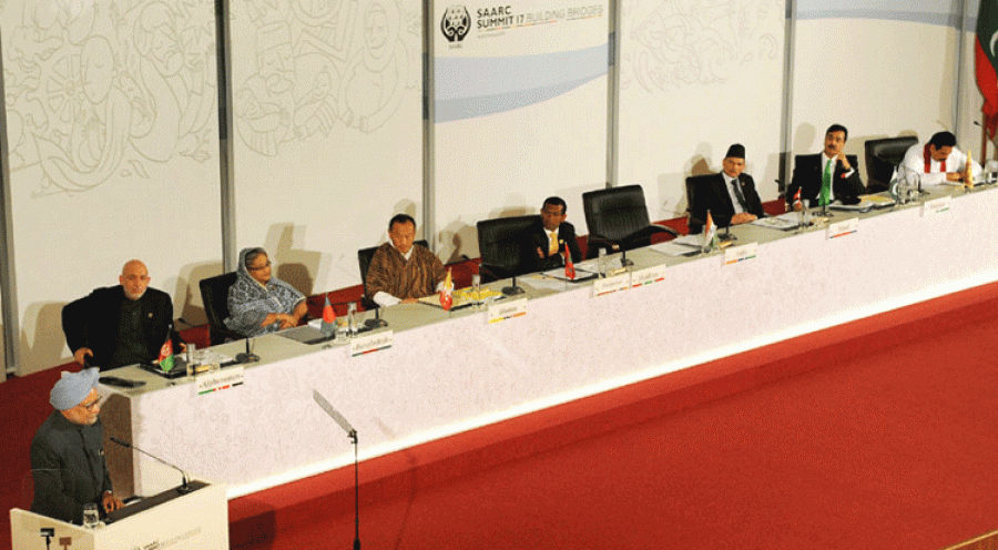 मनमोहन सिंह ने कहा कि ये शिखर सम्मेलन ऐसे समय मे हो रहा है जब वैश्विक अर्थव्यवस्था बेहद दबाव में है, विकास के लिए की जा रही हमारी कोशिशों पर इसका असर पड़ रहा है, हम आशा करते हैं कि प्रमुख बड़ी अर्थव्यवस्था वाले देशों के नेता और खासतौर से यूरो जोन के नेता समझदारी का परिचय देंगे, जिसकी जरूरत वैश्विक अर्थव्यवस्था को फिर से पटरी पर लाने के लिए है। उन्होंने कहा कि हमें दक्षिण एशिया में निवेश और विकास के संसाधन तथा नये रास्ते सृजित करने के लिए कल्पनाशीलता का इस्तेमाल करना चाहिए, मेरा मानना है कि हम अपने देश में ही विकास के लिए अनुकूल माहौल बना सकते हैं, ऐसे में हमारे निवेशकों को कहीं और जाने की जरूरत नहीं है। सार्क देशों के बीच सामान्य व्यापारिक संबंध स्थापित होने से दक्षिण एशिया के भीतर आपसी लाभकारी व्यापार के लिए बड़े पैमाने पर अवसर पैदा होंगे।