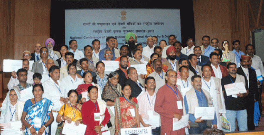 राज्य पशुपालन और डेयरी मंत्रियों के सम्मेलन में 28 राज्यों के 56 प्रगतिशील डेयरी किसानों को सम्मानित किया गया। कृषि मंत्रियों ने राज्यों से पशुपालन क्षेत्र पर खास ध्यान देने को कहा कृषि मंत्री शरद पवार ने विभिन्न राज्यों से चुने गए 56 प्रगतिशील डेयरी किसानों को राष्ट्रीय दुग्ध उत्पादक पुरस्कार 2011 प्रदान किए। इन डेयरी किसानों का चुनाव राज्य सरकारों ने दुग्ध सहकारी संघों, केंद्र के साथ विचार-विमर्श से किया। चयन के मानदंड में अभिनव, प्रबंधन कार्य, पैदावार और प्रजनन प्रदर्शन, चारा, स्वास्थ्य और कृषि प्रबंधन शामिल है। प्रत्येक राज्य से पुरस्कार के लिए दो डेयरी किसानों को चुना गया। 28 राज्यों में से कुल 56 पुरस्कार प्राप्तकर्ताओं में 8 महिलाएं भी शामिल हैं।