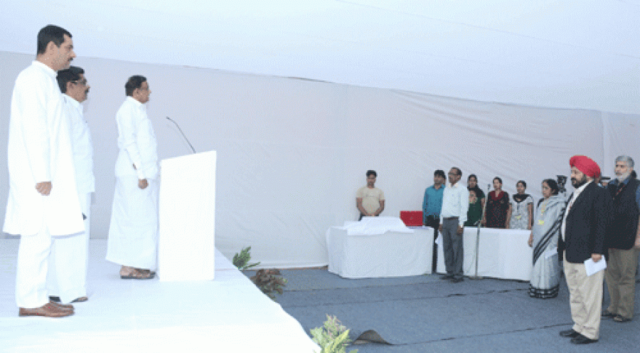 नई दिल्ली। शनिवार से देश भर में कौमी एकता सप्ताह मनाया जाएगा। शुक्रवार को यहां एक समारोह में केंद्रीय गृहमंत्री पी चिदंबरम ने गृह मंत्रालय और कार्मिक एवं प्रशिक्षण विभाग के अधिकारियों को राष्ट्रीय अखंडता की शपथ दिलाई। मंत्रालय में राज्यमंत्री मुल्लापल्ली रामचंद्रन और जितेंदर सिंह और केंद्रीय गृह सचिव आरके प्रधान समारोह में उपस्थित थे।