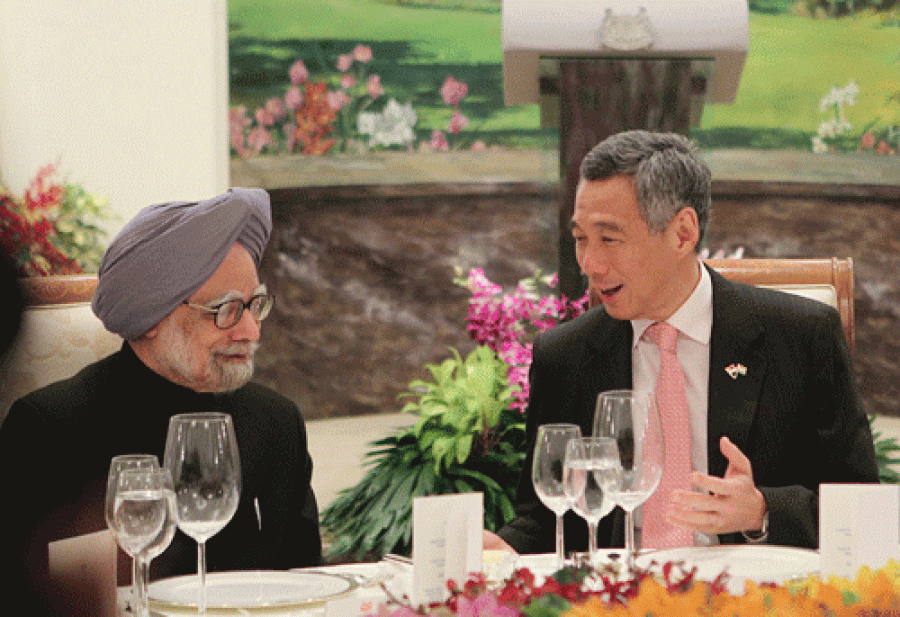 सिंगापुर। सिंगापुर के प्रधानमंत्री ली के दिवा-भोज के अवसर पर भारत के प्रधानमंत्री मनमोहन सिंह ने कहा है कि सिंगापुर के साथ हमारे व्यापार और निवेश संबंधों में गुणात्मक उन्नति हुई है। उन्होंने कहा कि भारत सरकार सिंगापुर के साथ अपने संबंधों को सर्वोच्च प्राथमिकता देती है, सिंगापुर के साथ संबंधों के कारण ही भारत की विदेश और आर्थिक नीतियों में महत्वपूर्ण परिवर्तन आया और आज इसका प्रादुर्भाव हमारी ‘पूर्व की ओर देखो’ नीति के रूप में हुआ है। उन्होंने कहा कि सिंगापुर ने भारत के लिए नए क्षितिज खोले हैं, सिंगापुर में जिस तेजी से बदलाव आया है और आर्थिक विकास हुआ है, वह आज के इस अनिश्चित विश्व के लिए, जहां हम रहते हैं, एक आशा की किरण है। सिंगापुर न केवल एशिया के लिए, बल्कि विश्व के लिए एक उदाहरण है, मानव संसाधनों, शिक्षा और बुनियादी ढांचे में यहां निवेश अनुकरण करने योग्य हैं।