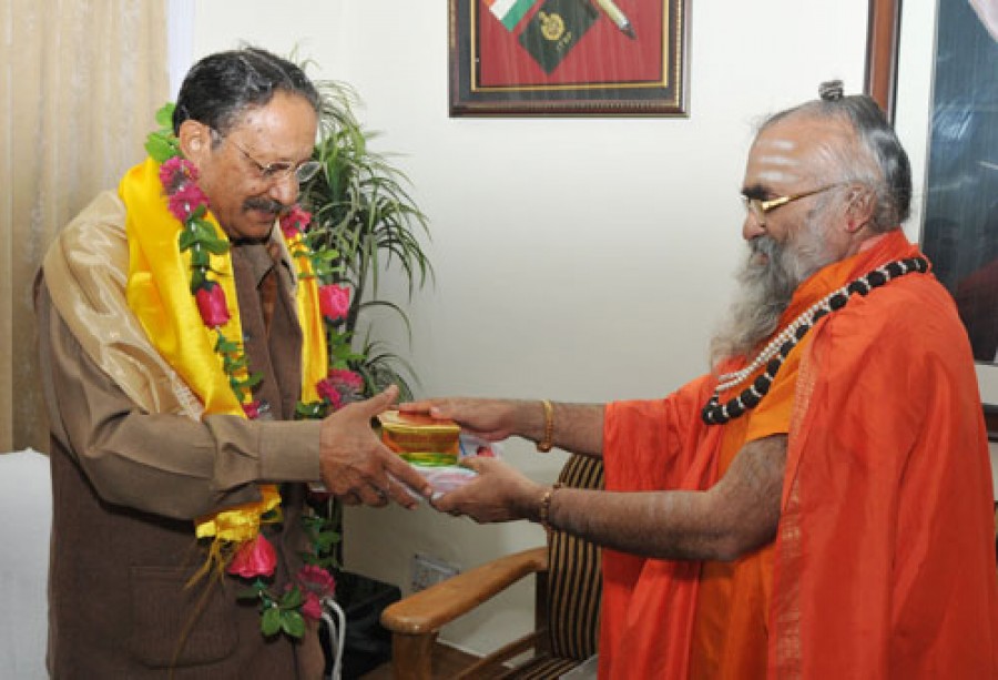देहरादून। मुख्यमंत्री भुवन चंद्र खंडूड़ी ने शुक्रवार को मुख्यमंत्री आवास पर केदारनाथ धाम के जगदगुरू रावल भीमाशंकर लिंग से मुलाकात की और उनसे आशीर्वाद प्राप्त किया। मुख्यमंत्री से भेंट के दौरान जगदगुरू ने वेतन के स्थान पर मानदेय दिये जाने की बात कही, इस पर मुख्यमंत्री ने इस प्रकरण पर बद्रीनाथ-केदारनाथ मंदिर समिति से वार्ता करने का आश्वासन दिया। मुख्यमंत्री ने जगदगुरू को राज्य में संचालित विभिन्न विकास योजनाओं की जानकारी भी दी, साथ ही धार्मिक और पर्यटन स्थलों के विकास के लिए किये जा रहे कार्यों की भी जानकारी दी। मुख्यमंत्री ने कहा राज्य सरकार धार्मिक पर्यटन को बढ़ावा देने के लिए ठोस कार्ययोजना तैयार कर रही है। जगदगुरू ने कहा कि उत्तराखंड देवभूमि है और उसी अनुरूप यहां का विकास होना चाहिए। उन्होने कहा कि सरकार को धार्मिक महत्व के स्थलों के रख-रखाव पर भी अधिक ध्यान देना चाहिए, उन्होंने राज्य में भ्रष्टाचार निवारण की दिशा में लिये गये निर्णयों की भी सराहना की।