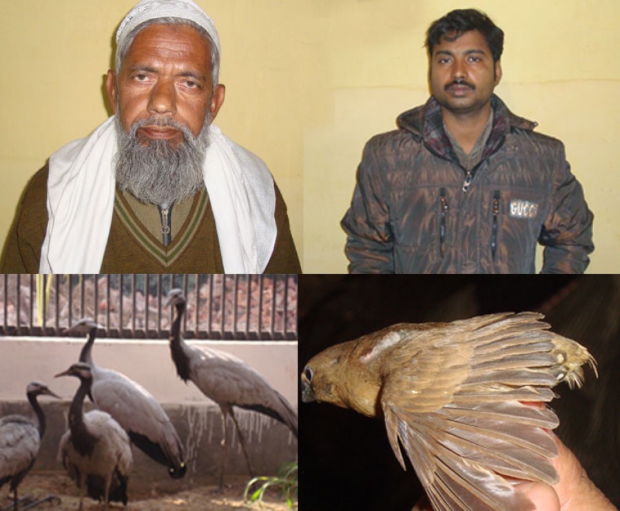 लखनऊ। पहचानिए इन्हें ! ये संरक्षित दुर्लभ पक्षियों के तस्कर और हत्यारे हैं। एसटीएफ उत्तर प्रदेश ने दुलर्भ श्रेणी के पक्षियों का अंतर्राष्ट्रीय स्तर पर अवैध व्यापार करने वाले इन दो लोगों को लखनऊ एवं उन्नाव में गिरफ्तार करने एवं अवैध व्यापार के लिये जमा किये गये पक्षियों को मुक्त कराने में सफलता प्राप्त की है। एसटीएफ के अनुसार गिरफ्तार व्यक्ति हैं-मोहम्मद आमिर उर्फ राजू पुत्र गुलाम हसन, निवासी 91 बबुआगंज, मीर शिकार टोली, शेरशाह रोड, अल्ला बक्सपुर थाना आलमगंज पटना सिटी (बिहार) इसकी लखनऊ में गिरफ्तारी हुई है, जबकि हाजी मोहम्मद फरीद पुत्र मोहम्मद सज्जाद, निवासी 865 तालिब सराय थाना कोतवाली उन्नाव। इसकी उन्नाव में गिरफ्तारी हुई है। पुलिस ने इनके कब्जे से गिरफ्तार अभियुक्त से बरामदगी 4 संरक्षित अप्रवासी क्रेन, 160 संरक्षित चित्तीदार बाज, 3 मोबाइल फोन बरामद हुए हैं। अवैध रूप से पकड़े गये इन पक्षियों को इन लोगों ने पैक करने के जाल में निर्दयतापूर्वक बंद कर रखा था।