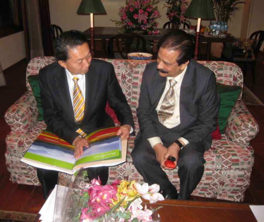 नई दिल्ली।सहारा इंडिया परिवार के चेयरमैन सुब्रत रॉय सहारा और जापान के प्रधानमंत्री यूकिओ हेतोयामा के बीच सोमवार को एक बैठक हुई जिसमें सहारा इंडिया परिवार के गुणात्मक एवं परिमाणात्मक विकास पर चर्चा हुई। हेतोयामा की पर्यावरण सम्बन्धी पहल पर अहम् और विस्तृत चर्चा में ऐम्बी वैली सिटी को पर्यावरण और ऊर्जा के लिहाज से विश्व के सर्वसक्षम मॉडल बनाने के लिए जापान सरकार के हर प्रकार के सहयोग पर बातचीत की गई। दोनो पक्षों के बीच वार्ता का परिणाम सकारात्मक एवं सहयोगात्मक रहा।