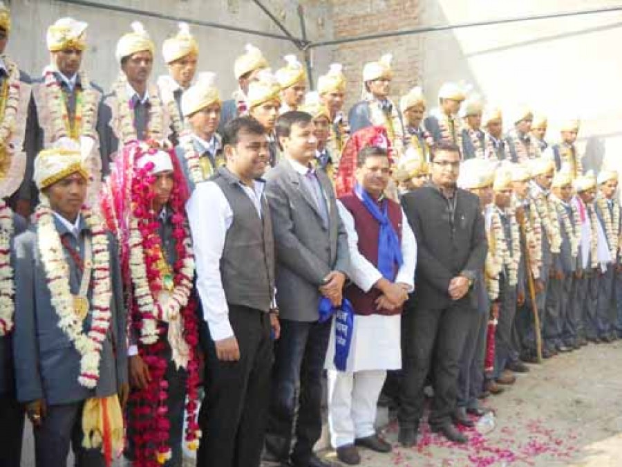 फिरोजाबाद। सिरसागंज में त्रिनेत्र सेवा संस्थान की जन कल्याणम् संस्था के सर्वधर्म सामूहिक विवाह समारोह में 43 हिंदू और 8 मुस्लिम युवक युवतियां परिणय बंधन में बंध गए। दोनों ही वर्गों के जोड़ों के लिए उनके रीति-रिवाजों के अनुकूल व्यवस्थाएं उपलब्ध कराई गईं। एक तरफ मौलवी साहेबान ने निकाह की रस्म अदायदगी कराई तो दूसरी ओर पंडितजी ने मंत्रोच्चार के माध्यम से फेरे और पाणिग्रहण संस्कार कराया। फिरोजाबाद और मैनपुरी के गांवों के इन गरीब, दलित और बेसहारा जोड़ों को शासन की विवाह योजना के तहत 10-10 हजार रूपये के चैक भी प्रदान किये गये।