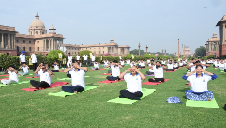 नई दिल्ली। पूर्वोत्तर क्षेत्र विकास, प्रधानमंत्री कार्यालय, कार्मिक, लोक शिकायत एवं पेंशन, परमाणु ऊर्जा और अंतरिक्ष विभाग में राज्यमंत्री डॉ जितेंद्र सिंह ने 5वें अंतर्राष्ट्रीय योग दिवस पर 21 जून 2019 को नई दिल्ली नॉर्थ ब्लॉक में पेंशन और पेंशनर्स कल्याण विभाग, कार्मिक, लोक शिकायत और पेंशन विभाग के अधिकारियों के साथ योगाभ्यास किया।