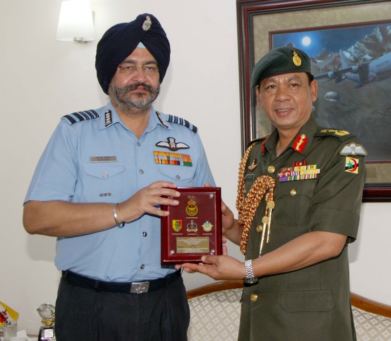 नई दिल्ली। चीफ ऑफ स्टाफ कमिटी के चेयरमैन और वायुसेना प्रमुख एयर चीफ मार्शल बीएस धनोआ ने 5 अगस्त 2019 को नई दिल्ली में रॉयल ब्रुनेई सशस्त्र बल के कमांडर मेजर जनरल पेंगिरन दातो पादुका सेरी अमीन बिन पेंगिरन हाजी महमूद के साथ स्मृति चिन्ह का आदान-प्रदान किया।