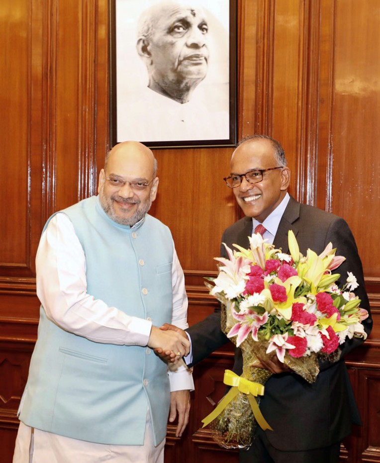 नई दिल्ली। सिंगापुर के गृह और कानून मंत्री के शनमुगम ने नई दिल्ली में केंद्रीय गृहमंत्री अमित शाह से मुलाकात की। दोनों ने बैठक के दौरान आपसी हित के द्विपक्षीय और क्षेत्रीय मुद्दों पर चर्चा की। गृहमंत्री अमित शाह ने कहा कि भारत और सिंगापुर संबंध साझा मूल्यों और दृष्टिकोण, आर्थिक अवसरों और प्रमुख मुद्दों पर आपसी हितों पर आधारित हैं। सिंगापुर के मंत्री के शनमुगम ने अमित शाह को सिंगापुर आने का निमंत्रण दिया।