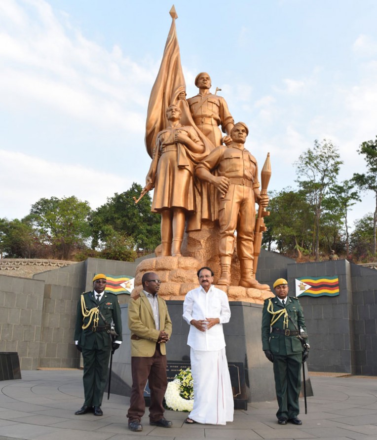 हरारे। उपराष्ट्रपति एम वेंकैया नायडू ने जिम्बाब्वे की राजधानी हरारे में जिम्बाब्वे की औपनिवेशिक शासन से आजादी में अपने जीवन को समर्पित करने वाले हीरोज के राष्ट्रीय स्मारक पर श्रद्धांजलि अर्पित की।