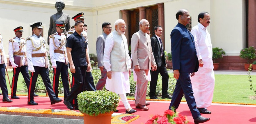 राष्ट्रपति रामनाथ कोविंद ने कहा कि मैंने इसी वर्ष 31 जनवरी को इसी सेंट्रल हॉल में कहा था कि मेरी सरकार पहले दिन से ही सभी देशवासियों का जीवन सुधारने, कुशासन से पैदा हुई उनकी मुसीबतें दूर करने और समाज की आखिरी पंक्ति में खड़े व्यक्ति तक सभी जरुरी सुविधाएं पहुंचाने के लक्ष्य के प्रति समर्पित है। उन्होंने कहा कि बीते पांच वर्ष के दौरान देशवासियों में यह विश्वास जगा है कि सरकार हमेशा उनके साथ है, उनका जीवन बेहतर बनाने के लिए काम कर रही है, देशवासियों के विश्वास की इस पूंजी के आधार पर ही एक बार फिर जनादेश मिला है। उन्होंने कहा किदेश के लोगों ने जीवन की मूलभूत सुविधाओं के लिए लंबे समय तक इंतजार किया, लेकिन अब स्थितियां बदल रही हैं, मेरी सरकार जन-साधारण को इतना सजग, समर्थ, सुविधायुक्त और बंधनमुक्त बनाना चाहती है कि अपने सामान्य जीवन में उसे सरकार का ‘दबाव, प्रभाव या अभाव’ न महसूस हो, देश के प्रत्येक व्यक्ति को सशक्त करना मेरी सरकार का मुख्य ध्येय है। उन्होंने कहा कि मेरी सरकार राष्ट्रनिर्माण की उस सोच के प्रति संकल्पित है, जिसकी नींव वर्ष 2014 में रखी गई थी, देशवासियों की मूलभूत आवश्यकताएं पूरी करते हुए अब सरकार उनकी आकांक्षाओं के अनुरूप एक सशक्त, सुरक्षित, समृद्ध और सर्वसमावेशी भारत के निर्माण की दिशा में आगे बढ़ रही है, यह यात्रा ‘सबका साथ, सबका विकास और सबका विश्वास’ की मूल भावना से प्रेरित है।