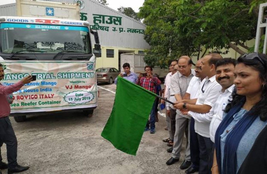 लखनऊ। उत्तर भारत से आम के निर्यात को प्रोत्साहन देने के लिए 10 टन चौसा आम की पहली खेप समुद्री मार्ग से उत्तर प्रदेश मंडी परिषद पैक हाउस मलिहाबाद लखनऊ से इटली भेजी गई। इस नौवहन को वाणिज्य एवं उद्योग मंत्रालय के अंतर्गत कृषि एवं प्रसंस्कृत खाद्य उत्पाद निर्यात विकास प्राधिकरण ने वित्तीय सहायता प्रदान की है। आम की इस खेप को उत्तर प्रदेश मंडी परिषद के निदेशक आरके पांडे तथा एपीडा के एजीएम डॉ सीबी सिंह ने हरी झंडी दिखाकर रवाना किया। इस अवसर पर विभिन्न विभागों के अधिकारी भी उपस्थित थे। आम की इस खेप को रीफर कंटेनर द्वारा गुजरात के पीपावाव बंदरगाह भेजा गया, जहां से यह स्पेन के रास्ते इटली पहुंचेगा।
