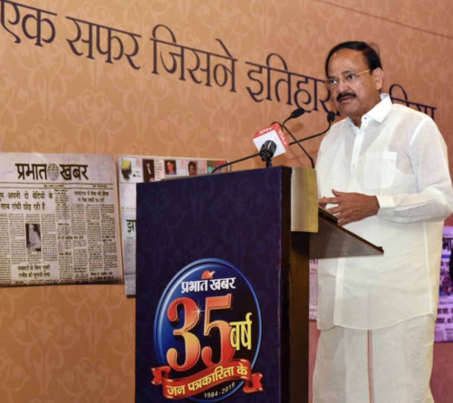 रांची। उपराष्ट्रपति एम वेंकैया नायडु ने कहा है कि मीडिया राष्ट्रीय संसाधन है, जिसे पत्रकारबंधु जनविश्वास या ट्रस्ट में प्रयोग करते हैं। उन्होंने कहा कि यदि मीडिया लोकतंत्र का चौथा स्तंभ है तो लोकतांत्रिक व्यवस्था में इसकी भूमिका और भी महत्वपूर्ण हो जाती है। उपराष्ट्रपति ने कहा कि संसद और मीडिया एक दूसरे के सहयोगी हैं, दोनों ही संस्थान जनभावनाओं को अभिव्यक्ति देते हैं। उन्होंने आग्रह किया कि आज जब हम बढ़ती और बदलती जनअपेक्षाओं के युग में रह रहे हैं, तब आवश्यक है कि हमभी अपने स्थापित पूर्वाग्रहों को त्यागें और जनापेक्षाओं को स्वर दें। उन्होंने कहा कि मीडिया को भी विकासवादी सकारात्मक राजनीति का वाहक बनना होगा, मीडिया सरकारों और राजनैतिक दलों की जवाबदेही अवश्य तय करे, परंतु उसके केंद्र में जनसरोकार हों न कि सत्ता संस्थान। उन्होंने कहा कि मीडिया यथा स्थितिवादी राजनीति में बदलाव का कारक बने और दलीय राजनीति से ऊपर उठकर जनकेंद्रित मुद्दे उठाए। उपराष्ट्रपति ने झारखंड प्रदेश के प्रतिष्ठित समाचार पत्र प्रभात ख़बर के 35वें वार्षिक समारोह को संबोधित करते हुए ये विचार व्यक्त किए।