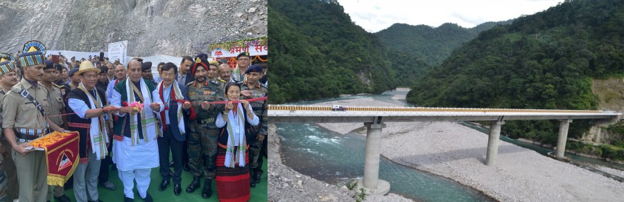 ईटानगर। रक्षामंत्री राजनाथ सिंह ने सीमा अवसंरचना को उन्नत बनाने का आह्वान किया है। उन्होंने कहा कि पूर्वोत्तर तथा पूरे देश की सुरक्षा के लिए अवसंरचना को उन्नत बनाना बहुत आवश्यक है। रक्षामंत्री ने अरुणाचल प्रदेश में लोअर दिबांग घाटी में सिसेरी नदी पुल का उद्घाटन करते हुए कहा है कि राष्ट्रीय सुरक्षा सरकार की पहली प्राथमिकता है। यह पुल 200 मीटर लंबा है, जो जोनाई-पासीघाट-राणाघाट-रोइंग सड़क के बीच बना हुआ है, यह दिबांग घाटी और सियांग को जोड़ रहा है। उल्लेखनीय है कि अरुणाचल प्रदेश के लोग बहुत पहले से इस पुल की मांग कर रहे थे। यह पुल बन जाने से पासीघाट से रोइंग जाने के सफर में लगभग पांच घंटे की कमी आएगी। रक्षामंत्री ने कहा कि सरकार ने सीमावर्ती क्षेत्रों के आसपास रहने वालों की सुरक्षा के मद्देनज़र सीमा क्षेत्र विकास कार्यक्रम शुरू किया है।