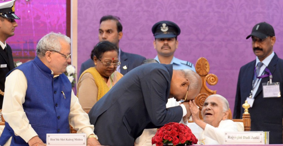 राष्ट्रपति रामनाथ कोविंद ने कहा कि आध्यात्म पर आधारित व्यक्तिगत परिवर्तन द्वारा मानवता के नवनिर्माण में संलग्न ब्रह्मकुमारी संस्थान आज विश्वपटल पर प्रभावी भूमिका निभा रहा है, इस कार्यक्रम में आकर मुझे अत्यंत प्रसन्नता हुई है। समारोह में हजारों की संख्या में राजयोगिनी महिलाएं देखकर राष्ट्रपति ने कहा कि यह पूरे विश्व के लिए महिला नेतृत्व की मिसाल है। उन्होंने कहा कि लगभग 80 वर्ष पूर्व इस ईश्वरीय संस्था को आरंभ करने वाले दादा लेखराज जी, जो ब्रह्मा बाबा के नाम से विख्यात हैं, पहले एक सफल उद्यमी थे, जिनका हीरे-जवाहरात का व्यापार था। उन्होंने कहा कि जौहरी तो हीरों का पारखी होता है, वह अनगढ़ पत्थरों को तराश-तराश कर चमकदार हीरों का रूप देता है, मैं समझता हूं कि ब्रह्मा बाबा ने आजीवन इंसानों को तराशने का काम किया, आज यहां सभी ब्रह्माकुमारियों के रूपमें प्रजापिता ब्रह्मा बाबा की सोच से तराशे हुए हजारों महिलारत्न उपस्थित हैं।