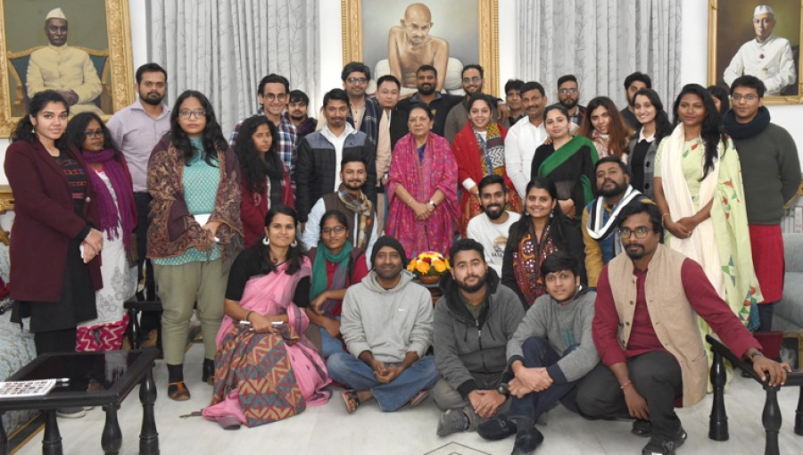 लखनऊ। राज्यपाल आनंदीबेन पटेल से राजभवन में नई दिल्ली की संस्था इंडियन स्कूल ऑफ डेमोक्रेसी के सदस्यों ने शिष्टाचार भेंट की। सदस्यों में टीम लीडर प्रखर के नेतृत्व में 18 राज्यों के विभिन्न दलों के 35 सदस्य शामिल थे। संस्था ने युवाओं में लोकतंत्र एवं राजनीति की समझ विकसित करने के उद्देश्य से डेमोक्रेसी एक्सप्रेस विषयक सड़क यात्रा की शुरुआत की है, जिसमें 18 राज्यों से चयनित युवा सहभाग कर रहे हैं। यह यात्रा उत्तर प्रदेश, राजस्थान एवं गुजरात से होकर 29 दिसम्बर 2019 को गांधी आश्रम अहमदाबाद पर समाप्त होगी। राज्यपाल ने उत्तर प्रदेश से प्रारम्भ होकर गांधी आश्रम अहमदाबाद तक की सड़क यात्रा हेतु संस्था के सदस्यों को शुभकामनाएं दीं।