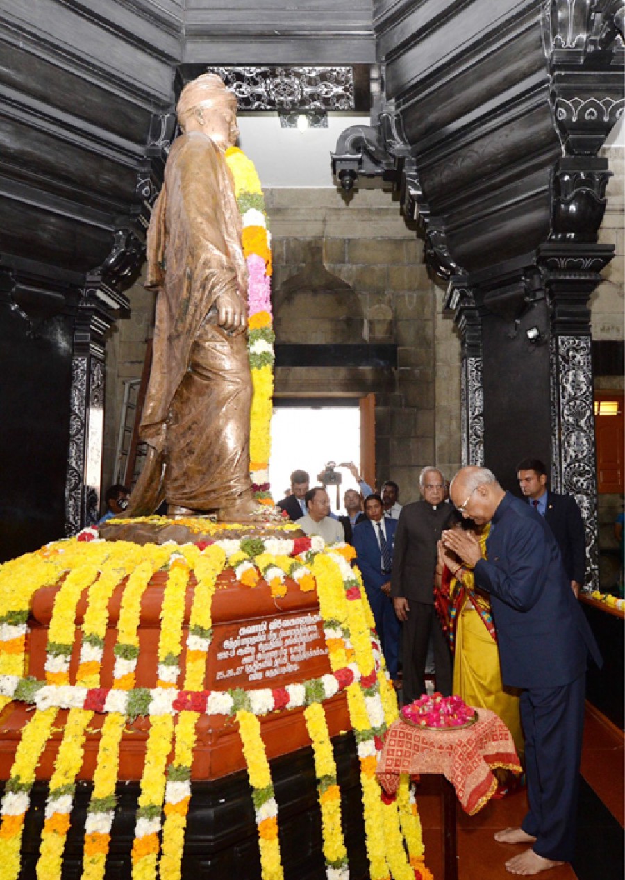 कन्याकुमारी। राष्ट्रपति रामनाथ कोविंद ने कन्याकुमारी में विवेकानंद रॉक मेमोरियल और विवेकानंद केंद्र का अवलोकन किया और कहा कि हम ऐसे स्थान पर एकत्रित हुए हैं, जो हमें निरंतर सकारात्मक ऊर्जा प्रदान करता है, यह भारत माता के मस्तक पर आध्यात्मिक शक्ति है, जिसने आंतरिक शांति की खोज में लगे स्वामी विवेकानंद को कन्याकुमारी आने के लिए आकर्षित किया था। राष्ट्रपति ने कहा कि 127 वर्ष पहले इसी दिन 1892 में स्वामी विवेकानंद ने इस पवित्र स्थल पर गहन ध्यान किया था, तीन दिन और तीन रात के बाद एक साधारण संत एक ज्ञान प्राप्त व्यक्ति के रूपमें परिणत हो गया और भारतीय सनातन धर्म संस्कृति का वैश्विक संदेशवाहक बन गया।
