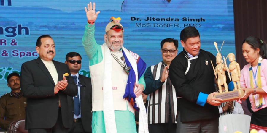 गृहमंत्री अमित शाह ने कहा कि प्रधानमंत्री नरेंद्र मोदी के मन में पूर्वोत्तर राज्यों के लिए विशेष प्रेम है और राष्ट्र के इस महत्वपूर्ण भाग के विभिन्न स्थानों के महत्व को समझने के लिए उन्होंने सभी केंद्रीय मंत्रियों को हर पखवाड़े उत्तर पूर्वी राज्यों का दौरा करने और क्षेत्र की समस्याओं को हल करने के लिए निर्देश दिए हैं, इसके परिणामस्वरूप 5 वर्ष में अरुणाचल प्रदेश में अकेले केंद्रीय मंत्रियों के 200 से अधिक दौरे हो चुके हैं और स्वयं प्रधानमंत्री भी 30 से अधिक बार इस क्षेत्र का दौरा कर चुके हैं। अमित शाह ने कहा कि नरेंद्र मोदी ने नॉर्थ ईस्ट के जुड़ाव का जो कार्यक्रम चलाया है, उसमें अरुणाचल प्रदेश का एक महत्वपूर्ण स्थान है, यहां की जनजातियों की एक अलग विशेषता है। उन्होंने कहा कि यहां की 27 जनजातियों और 120 उपजनजातियों के अधिकारों, उनकी परंपरा और संस्कृति की रक्षा करना भारत सरकार का दायित्व है और इसे कर्तव्य मानकर हम इसपर कार्य करते रहेंगे। गृहमंत्री ने कहा कि अरुणाचल प्रदेश में डीडी चैनल शुरु किया गया है। उनका कहना है कि एनईसी के तहत जारी होने वाले बजट का 33 प्रतिशत अरुणाचल के उन गांवों में खर्च किया जाएगा, जहां बिजली, गैस आदि मूलभूत सुविधाओं की कमी है।
