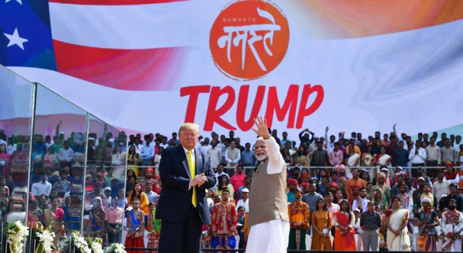 अहमदाबाद। प्रधानमंत्री नरेंद्र मोदी ने अहमदाबाद के मोटेरा स्टेडियम में अमेरिका के राष्ट्रपति डोनाल्ड ट्रंप के सम्मान में आयोजित नमस्ते ट्रंप कार्यक्रम को संबोधित करते हुए कहा है कि आज मोटेरा स्टेडियम में एक नया इतिहास बन रहा है, आज हम इतिहास को दोहराते हुए भी देख रहे हैं। प्रधानमंत्री ने कहा कि पांच महीने पहले मैं अपनी अमेरिका यात्रा की शुरुआत ह्यूस्टन में हाउडी मोदी कार्यक्रम से की थी और आज मेरे दोस्त राष्ट्रपति डोनाल्ड ट्रम्प अपनी ऐतिहासिक भारत यात्रा का आरंभ अहमदाबाद में नमस्ते ट्रंप से कर रहे हैं। नरेंद्र मोदी ने कहा कि वे अमेरिका से सीधे यहां पहुंचे हैं, इतनी लंबी यात्रा के बाद भारत में उतरते ही राष्ट्रपति डोनाल्ड ट्रम्प और उनका परिवार सीधे साबरमती आश्रम गया और फिर यहां कार्यक्रम में आया है। प्रधानमंत्री ने कहा कि दुनिया के सबसे बड़े जनतंत्र भारत में राष्ट्रपति डोनाल्ड ट्रम्प का ह्रदय से बहुत-बहुत स्वागत है, ये धरती गुजरात की है, लेकिन उनके स्वागत के लिए जोश पूरे हिंदुस्तान का है। उन्होंने कहा कि ये उत्साह, ये आसमान तक गूंजती आवाज़, ये पूरा वातावरण एयरपोर्ट से लेकर यहां स्टेडियम तक हर तरफ भारत की विविधताओं के रंग ही रंगा हुआ नज़र आ रहा है और इन सबके बीच राष्ट्रपति डोनाल्ड ट्रम्प, प्रथम महिला मेलानिया ट्रम्प, इवांका और जेरेड की उपस्थिति, राष्ट्रपति का अपने परिवार के साथ यहां आना भारत और अमेरिका रिश्तों को एक परिवार जैसी मिठास और घनिष्ठता की पहचान दे रहा है।