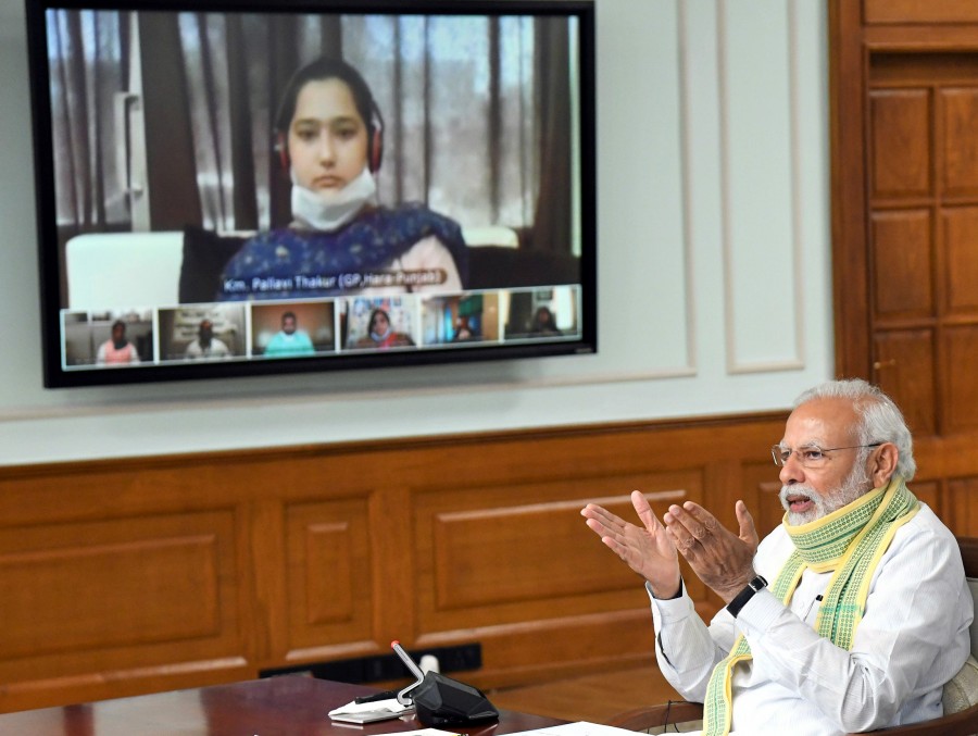 प्रधानमंत्री नरेंद्र मोदी ने कहा कि सरकार ने गांवों को आत्मनिर्भर बनाने तथा ग्राम पंचायतों को और भी अधिक मजबूत बनाने के लिए कड़ी मेहनत की है। उन्होंने कहा कि पिछले पांच वर्ष में लगभग 1.25 लाख पंचायतों को ब्रॉडबैंड के माध्यम से जोड़ा गया है, जबकि पहले यह संख्या मात्र 100 ही थी, इसी तरह साझा सेवा केंद्रों की संख्या 3 लाख का आंकड़ा पार कर गई है। उन्होंने कहा कि जब से भारत में मोबाइल फोन का निर्माण किया जा रहा है, तभी से स्मार्टफोन की कीमतें काफी घट गई हैं और किफायती स्मार्टफोन हर गांव में पहुंच गए हैं, इससे ग्रामीण स्तरपर डिजिटल बुनियादी ढांचा और भी अधिक मजबूत होगा। प्रधानमंत्री ने कहा कि पंचायतों की प्रगति से राष्ट्र और लोकतंत्र की तरक्की सुनिश्चित होगी। आज का यह आयोजन दरअसल प्रधानमंत्री और ग्राम पंचायतों के प्रतिनिधियों के बीच सीधा संवाद स्थापित करने का अहम अवसर था। सरपंचों के साथ संवाद के दौरान प्रधानमंत्री ने अत्यंत सरल शब्दों में सामाजिक दूरी परिभाषित करने के ‘दो गज दूरी’ के मंत्र के लिए गांवों की सराहना की।