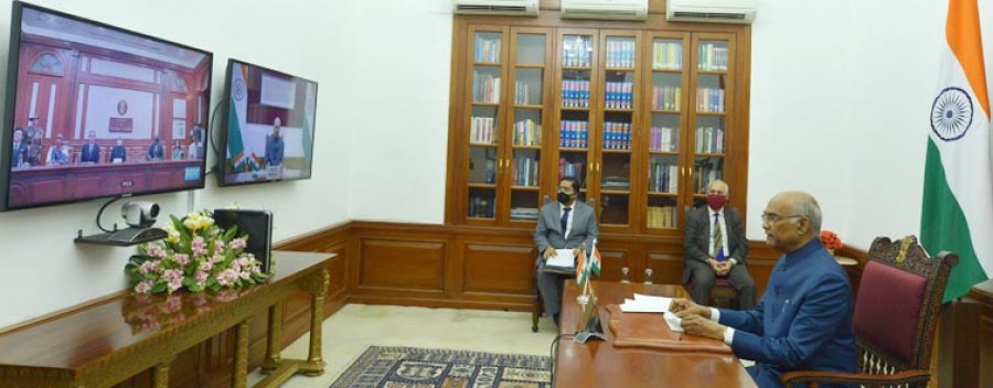 नई दिल्ली। राष्ट्रपति रामनाथ कोविंद ने आज वीडियो कांफ्रेंस के जरिए सात देशों कोरिया गणराज्य, सेनेगल, त्रिनिदाद एवं टोबैगो, मॉरीशस, ऑस्ट्रेलिया, कोटे डी'लवायर और रवांडा के राजदूतों एवं उच्चायुक्तों के परिचय पत्रों को स्वीकार किया। कोविड-19 की वजह से राष्ट्रपति भवन के इतिहास में ऐसा पहली बार हुआ है, जब परिचय पत्रों को डिजिटल माध्यम से प्रस्तुत किया गया है। राष्ट्रपति ने इसपर टिप्पणी करते हुए कहा कि डिजिटल प्रौद्योगिकी ने कोविड-19 की वजह से उत्पन्न चुनौतियों से निपटने और अभिनव तरीके से अपना कामकाज करने में दुनिया को सक्षम बना दिया है और इस कार्यक्रम ने भारत की डिजिटल डिप्लोमेसी पहल में एक नया आयाम जोड़ दिया है।