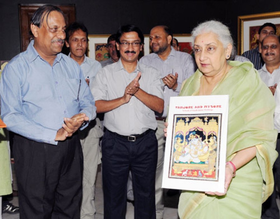 चंद्रेश कुमारी कटोच ने तंजौर और मैसूर चित्रकला से संबंधित पुस्तिकाओं और पाँच ग्रीटिंग कार्ड का भी विमोचन किया। ये दोनों दीर्घाएं आम दर्शकों के लिए प्रति दिन सवेरे दस बजे से शाम पाँच बजे तक खुली रहेंगी। सोमवार को छुट्टी रहेगी। तंजौर और मैसूर चित्रकला वर्ग में आमतौर पर तीन प्रकार के चित्र बनाए गए हैं। इनमें कृष्ण, राम, विष्णु आदि देवताओं के चित्र और उनके विभिन्न अवतार तथा लक्ष्मी और अन्य देवी-देवताओं के चित्र, शिव के विभिन्न अवतार तथा देवी पार्वती और कार्तिकेय, सुब्रमण्यमय और गणेश के चित्र और विभिन्न राजा-महाराजाओं, साधु-संतों आदि के चित्र बनाए जाते रहे हैं।
