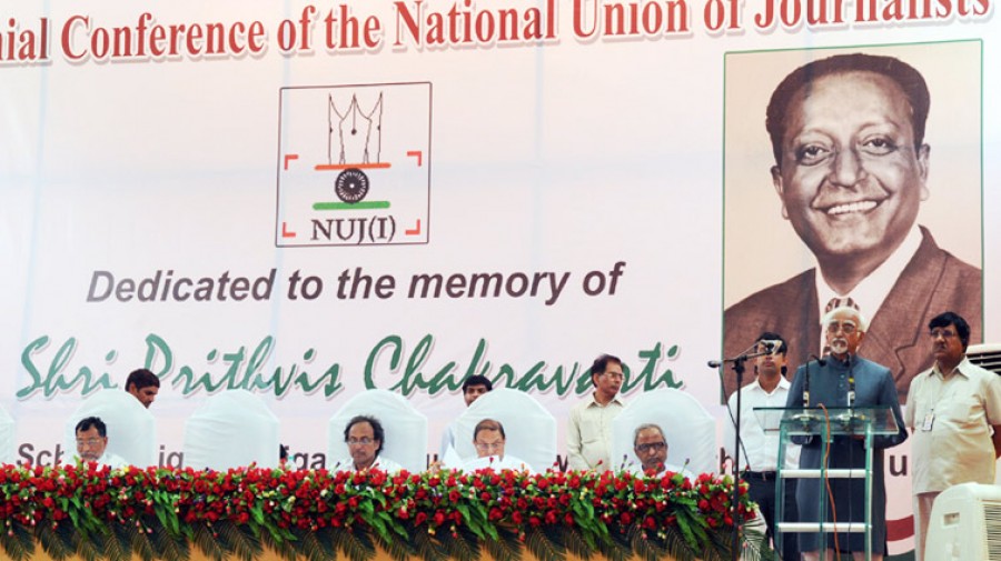 नई दिल्ली। उप राष्ट्रपति मोहम्मद हामिद अंसारी ने राष्ट्रीय पत्रकार संघ के द्विवार्षिक अधिवेशन में भारतीय मीडिया की छवि को पेड न्यूज़ और औद्योगिक एवं राजनीतिक घरानों के पिछलग्गू जैसी भ्रष्ट करतूतों से नेस्तनाबूद करने वालों को उनका नाम लिए बगैर बेनकाब किया। उप-राष्ट्रपति के भाषण में समझने वालों के लिए बहुत कुछ था, उनकी चिंता में आम आदमी का हक था और कुछ बिकाऊ और ठेकेदारों के मीडिया को कड़ी फटकार थी। उन्होंने मीडिया के अतीत में जाकर कहा कि वह लोकतंत्र में अपनी संभावित भूमिका निभाने में समर्थ बनाने के लिए तथा जनता के हित को सर्वाधिक महत्व देने के लिए प्रेस को समान अवसर उपलब्ध कराने के प्रयासों में अग्रणी रहा है, उसने देश में प्रेस की बेहतरी के लिए अथक काम किया है, किंतु आज वह जिस तरफ जा रहा है, वह चिंताजनक स्थिति है, मीडिया इस्तेमाल हो रहा है, इसमें अब संदिग्ध लोगों का काला धन लगा है, जिससे लोकतंत्र और अभिव्यक्ति की आजादी खतरे में है।