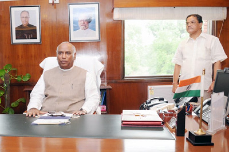 नई दिल्ली। मल्लिकार्जुन खड़गे ने बुधवार को केंद्रीय रेल मंत्री का पदभार संभाल लिया। इससे पहले खड़गे केंद्रीय श्रम और रोज़गार मंत्री थे। वे कर्नाटक के गुलबर्गा संसदीय क्षेत्र से लोकसभा सदस्य हैं। उन्होंने कार्यभार संभलाने के बाद रेलवे बोर्ड के अध्यक्ष विनय मित्तल, बोर्ड सदस्यों और वरिष्ठ अधिकारियों से प्राथमिकता वाले क्षेत्रों सहित रेल मंत्रालय से जुड़े महत्वपूर्ण मुद्दों पर चर्चा की।