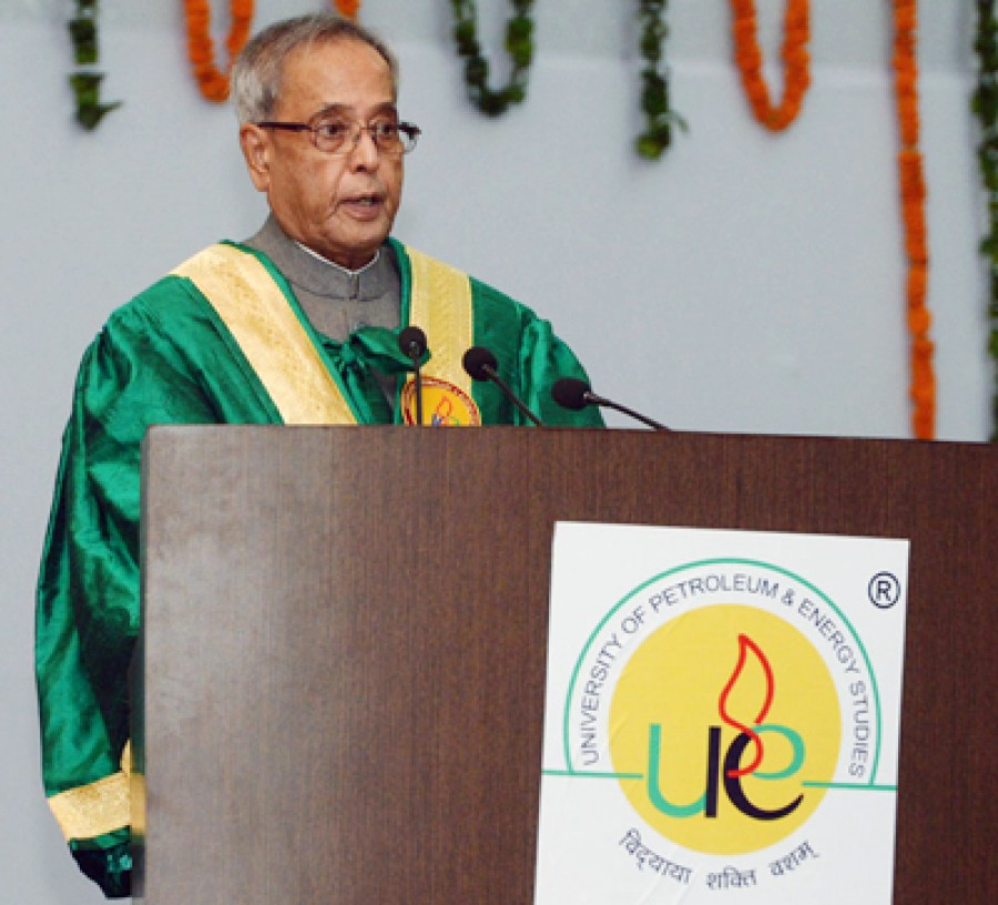प्रणब मुखर्जी ने कहा कि पारंपरिक ऊर्जा स्रोतों पर निर्भरता कम करने के लिए हमें वैकल्पिक ऊर्जा मॉडलों का भी पता लगाना होगा। ऊर्जा क्षेत्र में आज विज्ञान और प्रौद्योगिकी की काफी जरूरत है। उन्होंने आशा व्यक्त की कि ऊर्जा क्षेत्र की जरूरतें पूरी करने के उद्देश्य से पैट्रोलियम एवं ऊर्जा अध्ययन विश्वविद्यालय (यूपीईएस) आधुनिक जानकारी जुटाने में अहम भूमिका निभाएगा। राष्ट्रपति ने विश्वविद्यालय से अनुसंधान एवं नवाचार पर तेजी से आगे बढ़ते रहने का आग्रह भी किया।