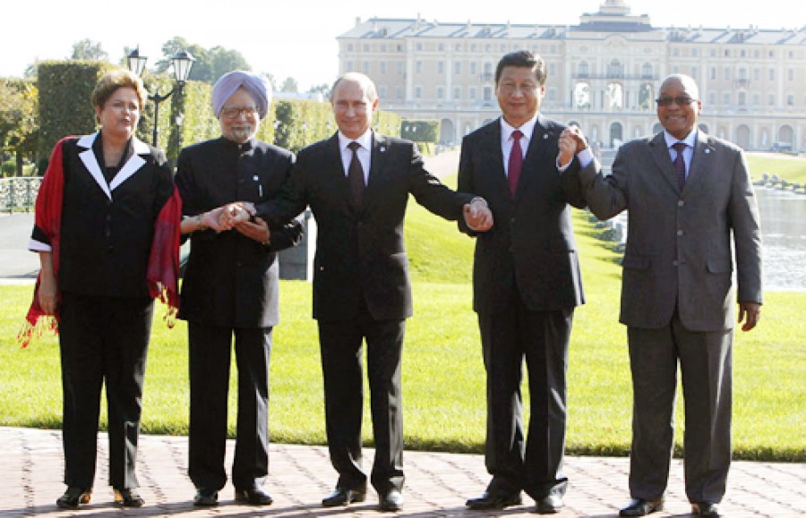 नई दिल्ली। सेंट पीटर्सबर्ग में जी-20 शिखर वार्ता की औपचारिक शुरूआत से पहले 5 सितंबर 2013 को ब्राजील, भारत, चीन और दक्षिण अफ्रीका (ब्रिक्स) के नेताओं ने बैठक की। नेताओं ने कुछ देशों में आर्थिक बहाली की धीमी गति, उच्च बेरोज़गारी तथा विश्व अर्थव्यवस्था की कमजोरियों और मौजूदा चुनौतियों, खासतौर से उन्नत अर्थव्यवस्थाओं में, को रेखांकित किया। उन्होंने विश्वास व्यक्त किया कि जी-20 सहित प्रमुख अर्थव्यवस्थाएं वैश्विक मांग और बाजार में भरोसा पैदा करने के लिए अधिक काम कर सकती हैं। ब्रिक्स नेताओं ने अंतर्राष्ट्रीय मुद्रा कोष (आईएमएफ) सुधार प्रक्रिया के रुकने के प्रति भी चिंता व्यक्त की।