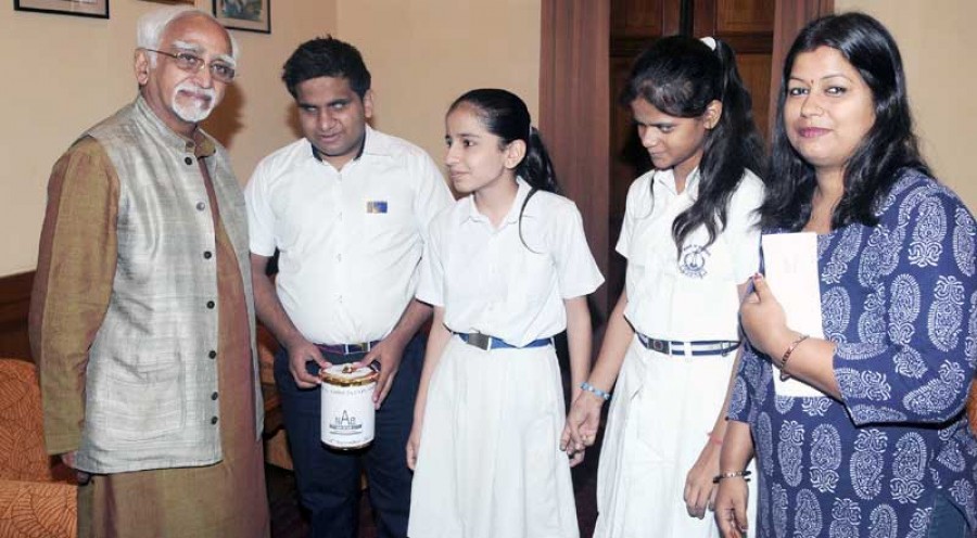 नई दिल्ली। राष्ट्रीय नेत्रहीन संघ के प्रतिनिधिमंडल ने आज उप राष्ट्रपति एम हामिद अंसारी से मुलाकात की। प्रतिनिधिमंडल के साथ मंद दृष्टि वाले कुछ स्कूली बच्चे भी उप राष्ट्रपति से मिले। उन्होंने बच्चों से बातचीत की और उन्हें भावी जीवन में सफलता की शुभकामनाएं दीं।
